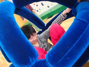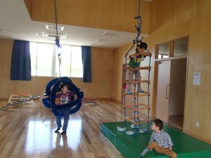 感覚統合の器具を頂きました。たのしいなーーー!!!ありがとうございました!!! 新多目的室に頂いた感覚統合の器具を設置しました。毎日利用者さんは興味あり、怖さありの中で楽しんで取り組んでいます。ありがとうございました。