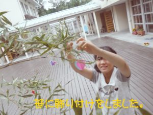 七夕用の笹を飾りつけしました。