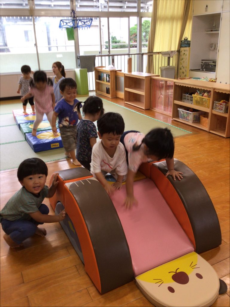 1歳児、りす組の子どもは体を動かすことが大好き。