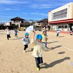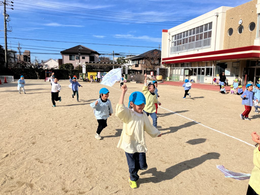 元気に園庭を走りまわり、凧揚げを楽しみました。