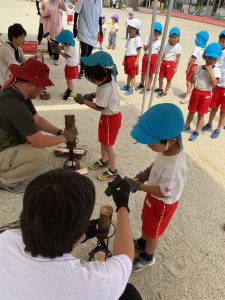 もうすぐハロウィン!! 2歳児うめ組では、お化け制作をしました。 目のシールを貼って、クレパスで思い思いに模様を描きました。 出来上がる嬉しそうに見せてくれました。