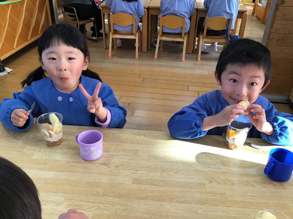 自分で選ぶ楽しさや、やりとりの経験を通して、お店屋さんごっこならではの学びを感じられるおやつの時間でした。