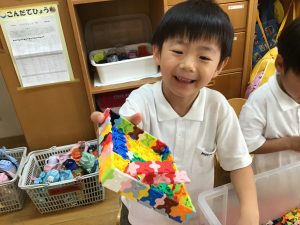 年長児ひまわり組の子どもたちが4月から通う小学校の一つに1年生との交流と学校見学に行きました。 「4月から小学生!」と張り切っている子どもたちでしたが、園とは違う学校の雰囲気に少し緊張の様子。しかし、1年生が手作り玩具を […]