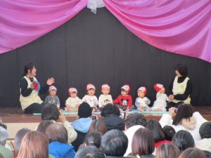 12月20日(土)に幼児クラスのこどもたちがゆうぎかいを行いました。 3歳児と4歳児は、踊りと歌(器楽演奏)、5歳児は劇と歌や手話を披露しました。 舞台袖に待機している時、幕が開く前など…様々な場面で緊張感や高揚感など色 […]
