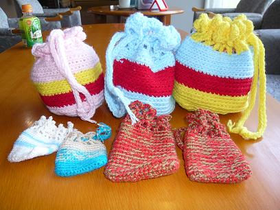 入居者さんが、毛糸を編んで『巾着』を作って下さいました。