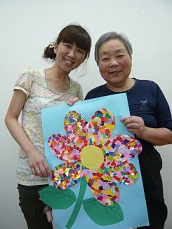 入居者Sさんと、栄養士が協同で、ちぎり絵『花』を作成しました。
