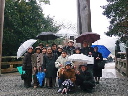 伊勢神宮へ参拝に行ったあと、おかげ横丁でお買い物を楽しみました。当日の天気は、あいにくの雨。しかし、大勢の方が参加されました。