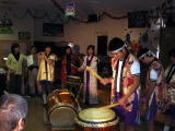 私たちのクリスマス会は、すごく元気がいいんだけど、今年は高浜市南中学6組の生徒さんたちが『和太鼓チーム プチ夢童』として、和太鼓の演奏をしてくれました。威勢のいい太鼓はもちろんですが、難しい横笛まで生徒さんが吹いてくれたのにはビックリ! みんなの拍手喝采でした。