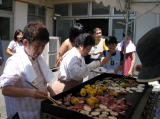 いや〜、この夏は暑かった・・。といっても、まだ夏は終わっていないか。まだまだ暑さは続きそう。みんな元気でやってますか? 体調管理には十分気をつけて、元気にこの夏を乗り切りましょう♪ところで、先日、保護者会主催のバーベキュー大会が開かれました。沢山の保護者の方が、暑い中大活躍してくれましたよ。当施設には焼きソバ名人と呼ばれるS氏がいますが、S氏も認める見事な焼き上がり! さすがにお母ちゃんパワーはすごいもんだ。(いや、お父ちゃんもいたか・・) 午前中、仕事を頑張った利用者さんは、待ちにまった昼食時間。手に手にお皿を持って、熱々のお肉をお腹一杯ほお張りました。 保護者の皆さん、おつかれさま♪ 沢山の元気を貰いましたよ〜! 感謝 |