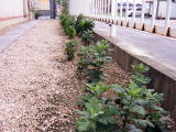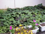 右の写真は、事務所前の小さな花壇に、Fさんのお母さんが植えてくれたサツマイモ。もう大きくなったかなぁ?