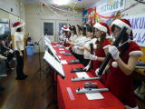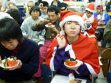 12/15(水)に、授産所にもついにサンタさんがやって来てくれました〜!♪ そりゃそうだよねぇ、みんな良い子(ホントは大人だけどね…)で一年間頑張ってきたんだもの、サンタさんはちゃんと見ててくれたね。良かったぁ♪ ということで、可愛らしいサンタさんや天使の先導で、恒例の「サンタさんパレード」。今年のサンタさんのソリは「ドラゴンズ優勝号」でした。電飾の綺麗さに、みんなしばしウットリ…。そのあとは、サンタらさんから一人ひとりにプレゼント。どっさり詰まったお菓子の詰め合わせに、みんなとってもHappyな笑顔が満開! あったか〜い気持ちになって、みなさん家路につきました。