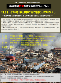 今回のフォーラムは、授産所の主催ということになりましたが、実は「高浜市の未来を創る市民会議」の地域福祉分科会のみなさんと、こんな時だからこそ高浜市でも防災フォーラムを開催したいね…と話し合っていて、みなさんのご協力により開催することができました。ということで、授産所としては初めて、沢山の市民ボランティアの方々や、手話ボラ・要約筆記ボラ・高浜市・教育委員会・社会福祉協議会のみなさんと共にフォーラムの運営をさせていただきました。みんなで力を合わせての開催は、とっても充実した時間でした。