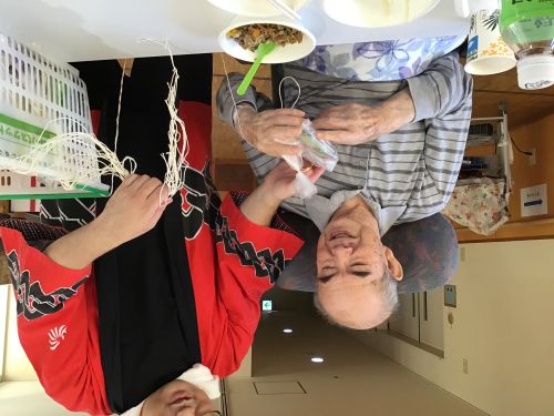 催し物として、紐引きを行いご入居者とご家族に紐を引いていただき、様々な景品をゲットして大満足でした。